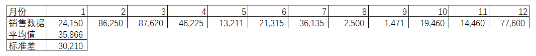 某公司过去12个的销售数据如下,虽然并没有验证分析,不过存在很大的可能性是该数据分布并不服从正态,并通过这个12个数据得出了月均销售和其标准差。