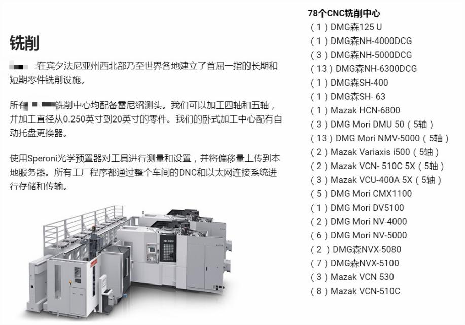 图5-3:某CNC加工公司网站“加工服务”栏目截图(Google自动翻译)