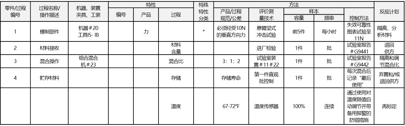 反应计划规定了为避免生产不合格产品或操作失控所需要的纠正措施。这些措施一般由最接近过程的人员(操作者、作业准备人员或主管)执行,生产现场的班/组长监督,并应在反应计划中清晰地将其指定出。