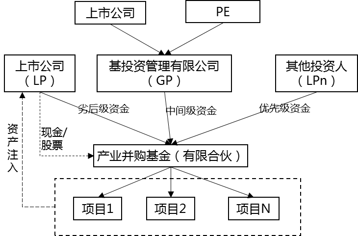 基金结构:上市公司出资作为基金的劣后级,投资机构出资作为夹层(或中间级),并由投资机构负责募集优先级资金。