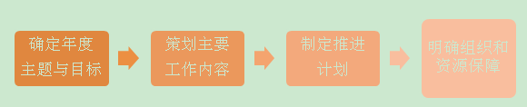 将年度主要工作和形式进行合理的安排,形成计划方案。制定分阶段主要活动、工作任务及时间要求,并确定活动宣传的形式,明确活动开展的要求及制定相应的工作程序。