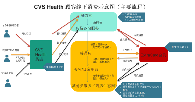 CVS Health顾客线下消费示意图(主要流程)包括以下几个方面: