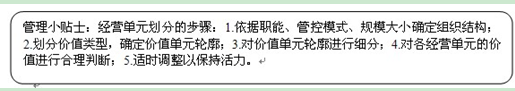 第二,根据价值类型,也就是判断是直接创造利润的部门,还是间接创造利润的部门,企业对各个部门进行初步的划分,确定经营单元划分的轮廓。