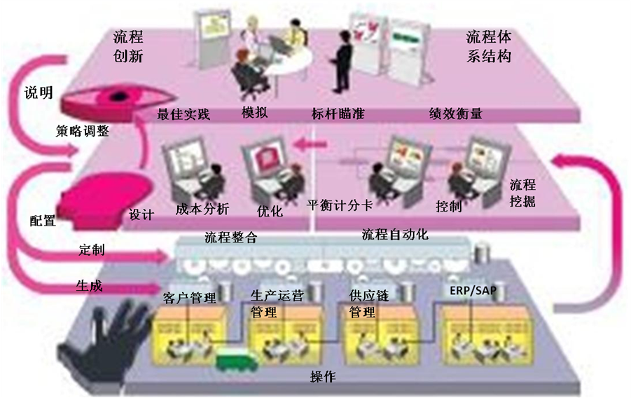 通过流程的组件化、菜单式管理,快速进行业务组合和调整,降低公司变革风险。打破职能界限,加强工作一体化设计图形化表达,清晰、简洁、无二义性成为各部门的共同语言,可以快速、准确、全面了解公司业务是成果固化的载体,提高成果固化效率,加速最佳实践的共享和移植,是业务外包和业务拓展的基础,是改善的对象和依据,提高改善效率。