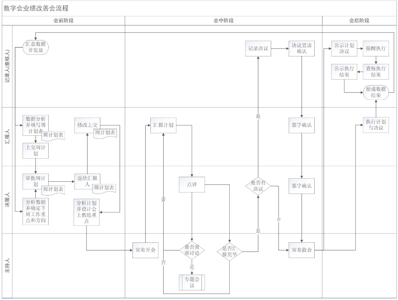 会议过程中最重要、最有效的工具是业绩总结计划表,为了帮助大家深刻理解数字化会议如何在正常运营改善业绩的同时落地系统,下一节以周业绩改善会为例,为大家分享业绩总结计划表的核心逻辑。