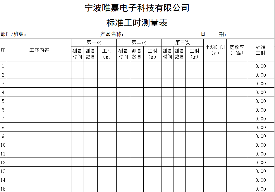 表1-3 标准工时测量表