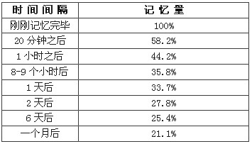 表3-1 艾宾浩斯记忆遗忘曲线表