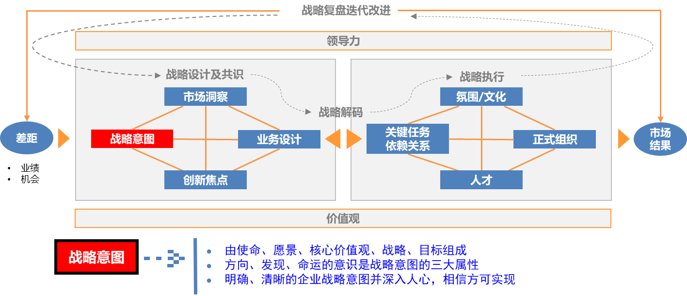 1989年,普拉哈拉德和哈默尔在《哈佛商业评论》上发表了《战略意图》的文章。两位学者将战略意图定义为一个雄心勃勃的宏伟梦想,不单是企业的动力之源,还能为企业带来情感和智能上的双重能量。从那时起,战略意图这四个字,被广泛应用,泛指企业中长期的远大理想。