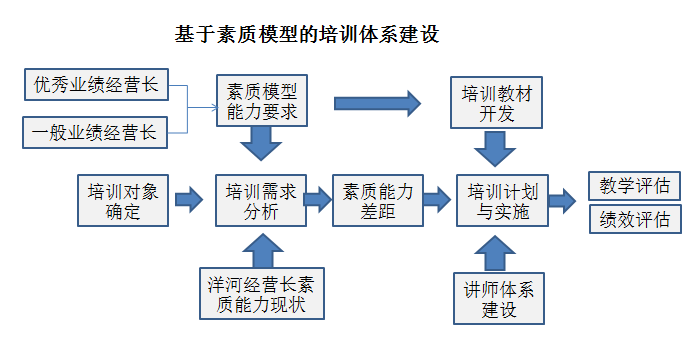 根据胜任素质模型的素质能力要求,开发经营长的培训教材时,我们按照如下步骤展开: