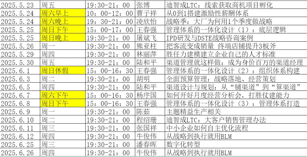 6月19——21日:西安,开展“薪酬绩效落地班”;
