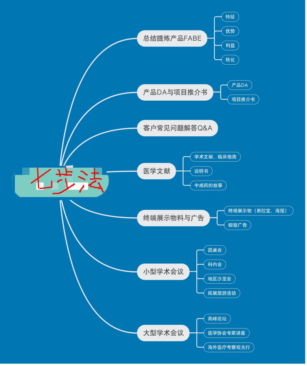 产品力设计的首要任务是塑造产品价值,如何塑造,甚至放大呢?第三终端营销主要是面向基层大夫端的渠道推广,产品价值的塑造和放大路径,我们概括为七步法。如图3-3所示。