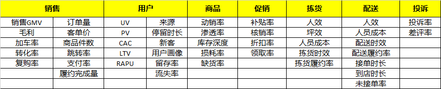 下一步,我们需要将数据维度池区分级别,暂时用P0、P1、P2、P3来代替重要优先级,P0级数据直接决定业务业绩,P1级数据直接体现业务健康度,P2、P3级数据直接反映精细化策略应用效果。如表2-1所示。