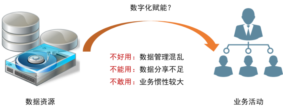 在早期,由于缺乏有效的数据管理制度和数据管理工具,同时,对数据管理的工作重视程度不足,导致数据的质量问题长期积累,数据的可靠性和可用性变得很差。企业只是不断地在生产数据,不会用,也不敢用已有的数据资源。对数据内容的管理不足,严重阻碍了企业开展数字化应用,实现全面的业务转型和组织转型。数据资源管理混乱的情况主要表现在以下几个方面: