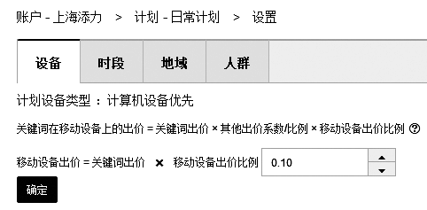 图3-22 在推广计划的【设备】界面设置移动端出价系数