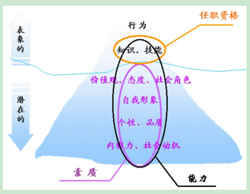 一般来讲,显性能力定义为“任职资格”,隐性能力定义为“素质”。二者之间的关系如图4-4所示: