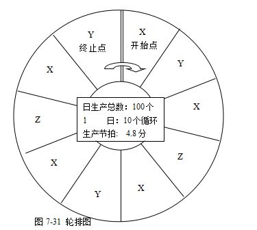 所谓轮排图是生产中,品种及生产数的排列图,形象地描述了各品种的生产排列(图7-31)。