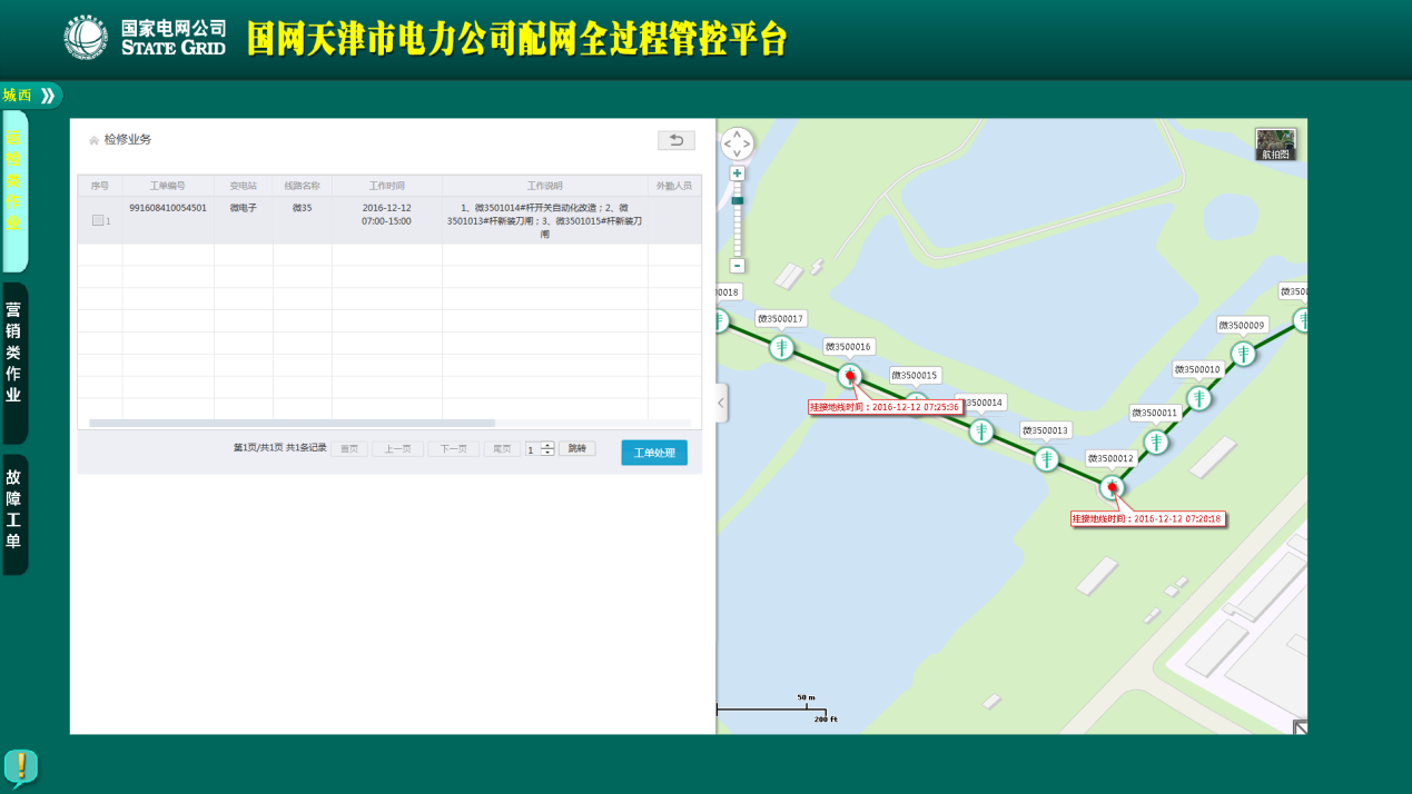 在检修作业中,系统中看到线路名称、工单编号、工单状态、工作时间等基本信息。还可看到地线挂接位置、挂接时间等信息,为后续开展安全作业分析、总结工作经验提供了依据