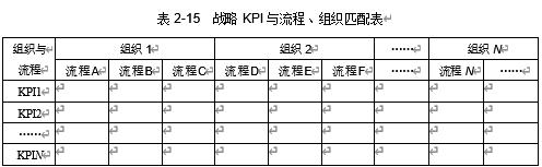 通过匹配表,可以将战略 KPI 与流程、组织建立关系。因为流程图明确了角色,且流程说明文件定义了角色与岗位的匹配关系,所以与 MRC 分析法相比,流程绩效指标法更精准。需要注意:将战略 KPI 匹配到组织并不能保证其得到有效执行,这是因为如果组织绩效向个人绩效的分解缺乏科学的方法,就可能出现偏差。将战略 KPI 直接分解到流程就可以避免这种情况,企业的员工每天都在执行流程,执行流程就直接支撑了战略 KPI 的落地。