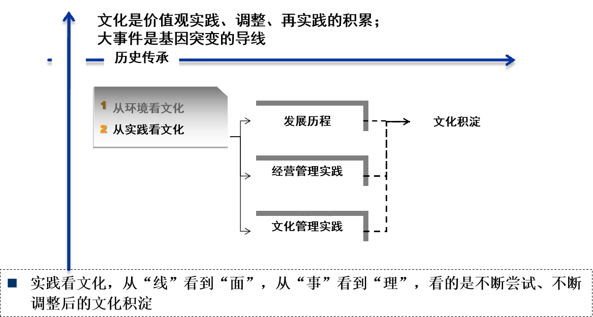 (2)从价值实践看企业文化积淀,探寻推动企业发展的关键导线。