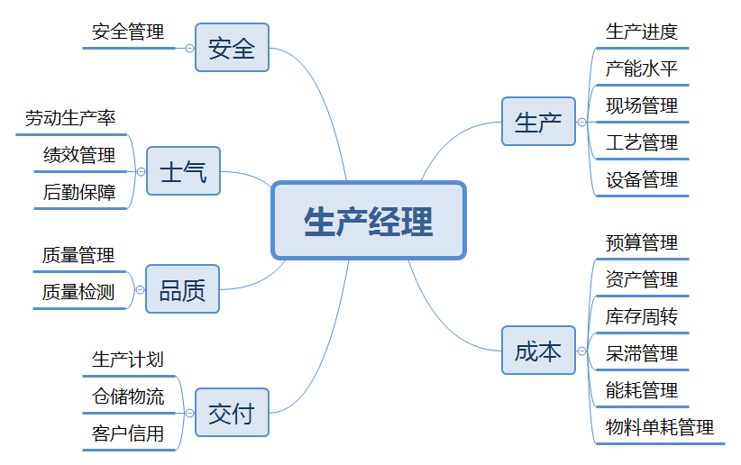 制造供应链管理有六大要素,分别是生产、品质、交付、成本、安全、士气,如图2所示。作为生产经理,需要全方位地负责六大要素的具体内容。