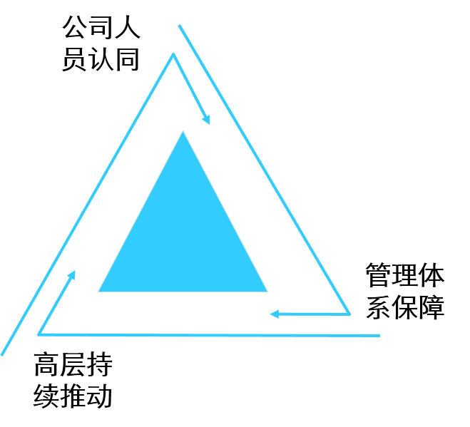 观念的转变是一个持续的、艰难的、痛苦的过程,首先,它需要公司全体人员的理解、认同,然后由高层领导持续推动,同时,公司相关管理体系为其提供支撑和保障。如图4-9所示。