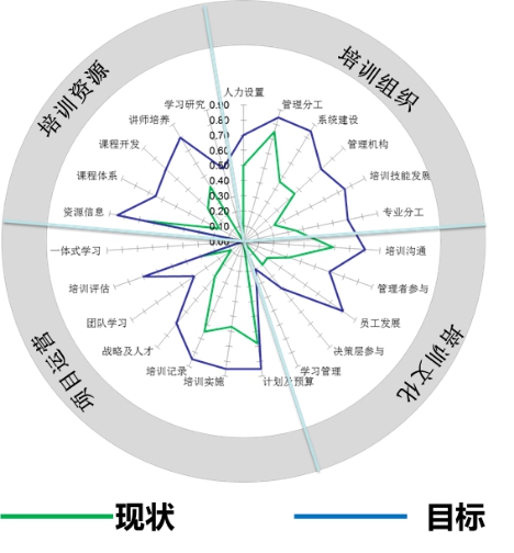 基于以上,我们也可以对培训体系的各个模块进行量化评估。用量化的形式展示出培训体系的长短板,如图2-11所示,使之可以有一个直观的展现。