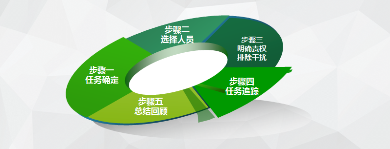 任务确定。管理者接到上级下达的任务后,除非你的下属能够一个人独立完成任务,而且也有时间完成,你可以直接就整个任务进行授权,但是大部分时候不具备这样的人员和时间条件,这时,管理者需要把任务分解,重新界定每个小的任务的标准和时间,然后把这些小的任务分配给部门中不同的员工,笔者过去会用一张大的甘特图把分解后每个小任务的责任人、完成时间和标准都展示出来,让所有的团队成员一目了然。