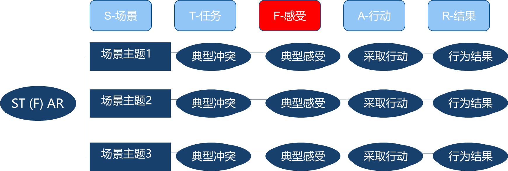 首先,应用ST(F)AR搭建案例的总体结构。具备包括案例背景,案例中任务、挑战或要解决的问题,各种角色的感受和状态,采取的各种行动,最后的结果。如图7-3所示。