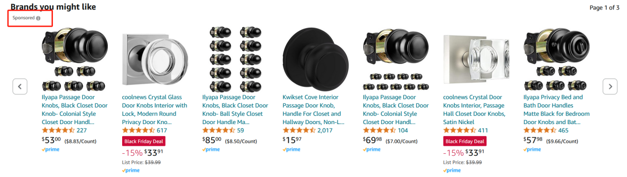 亚马逊CPC广告的展示位置非常多样,涵盖关键词搜索页面和商品详情页等区域。在搜索页面上,带有“Sponsored”标识的广告商品往往出现在结果的顶部或底部,是吸引用户点击的高流量入口。而在商品详情页,广告商品则以推荐形式出现,进一步扩大曝光机会。这种广泛的展示形式,确保了广告能够覆盖用户从搜索到浏览的多环节,从而最大化触达目标客户。