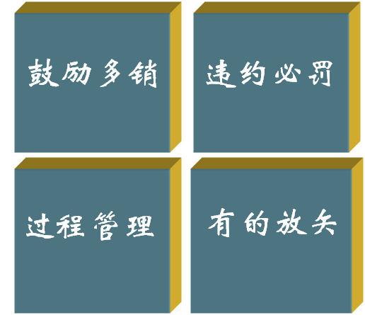 经销商永远只做你考核的,绝不做你希望的。厂家销售政策需要导向引导,体现一定的倾向性。现款现货就是鼓励经销商赶快出货,而铺底就是鼓励商家慢慢卖;公司执行紧缩信用政策,就设计加大现款提货的折扣;公司要规范市场秩序打击低价窜货,就应该有明确的违规惩罚措施;公司的重点是发展新客户,销售政策就该给经销商更多的实惠来鼓励新客户开发。如果要求经销商提升销量和市场份额,但同时要求经销商现款现货;或者要求推广新产品但利润率与老产品没什么区别也,就让经销商无所适从,失去经营的方向。