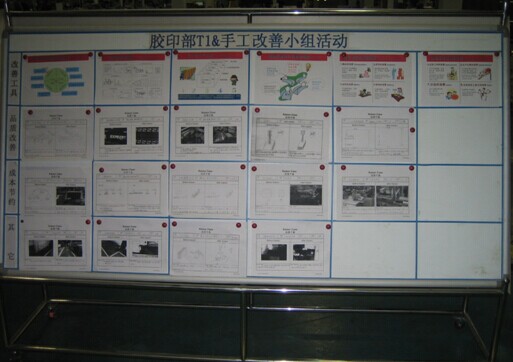 在精益改善中,很重要的一项就是目视化,在很多实行了精益管理的企业特别是已经形成了精益文化的企业,我们通常可以看到它们特别重视精益改善成果的展示,哪怕是一个小小的改善也会做成精益景点,让员工的改善成果得以展示。这样不仅增强了员工参与改善的积极性,还增加了员工的自豪感和荣誉感。