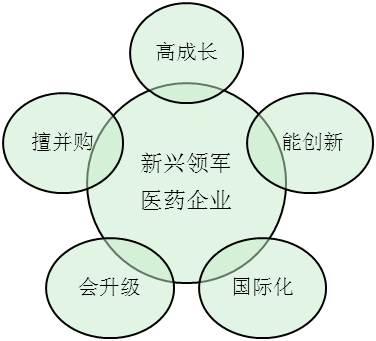 我们可以看到一批传统的医药强企,仍然保持比较好的发展态势。但今天我们更要关注昨天不知道、今天不知名,明天很著名的企业,它们正在走一条新路。这类企业我们称之为新兴领军医药企业。所谓的新兴领军医药企业,是在商业模式、成长道路、行业领导力和市场占有率等方面具有明显成为领头羊潜力的成长型医药企业。