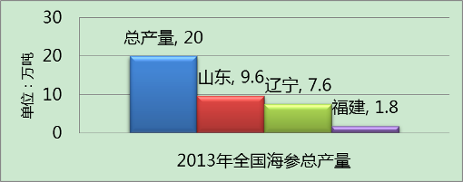 2013年全国海参产量超20万吨(如图6-1所示),其中,山东市场占48%、辽宁市场占38%、福建市场占9%。北方的主产区如青岛、威海、烟台、大连等地均呈现快速增长的态势,福建海参发展态势迅猛,由2010年的1.3%的占有量快速增长到2013年的9%。浙江、江苏等地养殖面积虽然急剧扩大,但总量有限。从全国市场的影响来看,辽宁作为重要的主产区,继续主导全国的消费市场;山东作为最大的产区和销售区,影响海参产业整体的走势;福建作为重要的补充,起到缓冲、平衡的作用。2014年,全国海参产量在种苗保有量高企的压力下,产量约为23万吨,但鲜参收购单价在春秋两季,南北方主产区均徘徊在35~40元,海参产业的上中下游压力空前,加工企业纷纷倒闭或放弃囤货,品牌海参销量下滑40%~60%,餐饮渠道、批发渠道开始为低价、低质的海参产品买单。