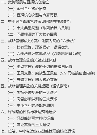 本次直播属于 “识干家管理大课堂” 中小制造企业管理案例系列课程,核心聚焦 “中小制造型家族企业如何通过系统化战略管理实现从零到 1.5 亿元的突破”。邀请的分享专家为宗东升老师 —— 上海彩旭管理咨询创始人,拥有 20 多年国企、民企人力资源管理经验,涉足生产制造、物流运输、电子商务等多个领域,近 8 年扎根温州中小民营制造企业,累计服务 100 多家企业的管理咨询项目,著有《强管理,打胜仗》一书,其核心方法论 “经营 - 管理三棱柱模型”(经营、管理各含三大要素)已在多家企业验证有效,同时也是陈凯洁具的管理顾问,全程参与该企业战略管理体系搭建。