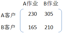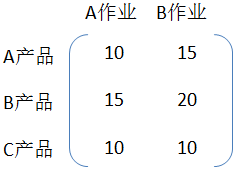 现有两个客户分别是A、B,有三个产品分别是A、B、C,有两项作业分别是A、B。
