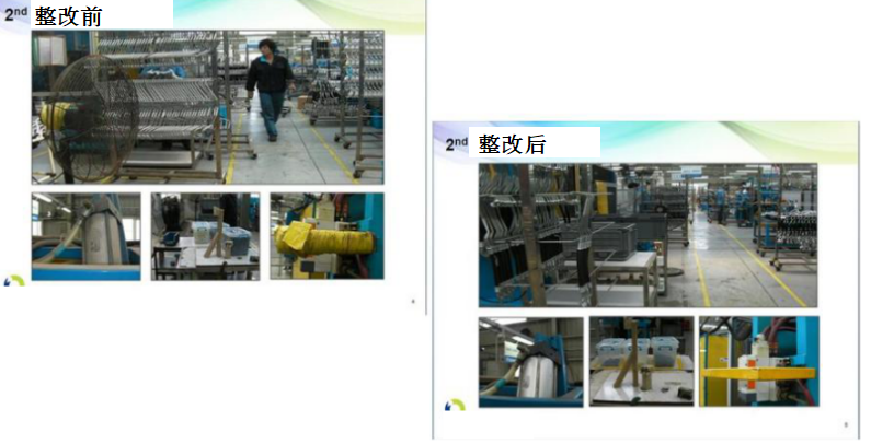 根据实际情况,进行5S审核,并就发现的问题提出整改计划。我们和工厂的管理团队一起对整个工厂进行每天的5S审核,对于所发现的问题,及时拍照和整改。这种方法能够在短时间内有很大的改变,但是缺点就是由于员工没有这种5S的意识,所以这种改变不容易保持。