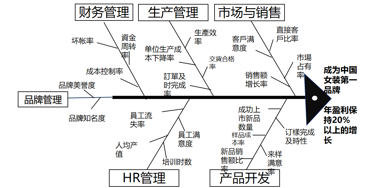 TO 投资战略目标按照从上到下依次是财务、客户、内部运营、学习与成长四个维度的逻辑关系进行层层分解。财务层面主要是阐明了公司所经营行为所产生的可衡量性经济结果,体现了公司对股东价值的增值。客户层面的重点是公司期望获得的客户和细分市场,部门如何满足内部和外部客户的需求。内部运营层面的重点是为了吸引并留住目标市场的客户,并满足股东的财务回报率期望,公司必须擅长什么核心经营流程,并符合公司的价值观趋向。学习与成长层面的重点是为了取得竞争成功,组织以及员工需要具备的核心知识和创新精神。