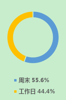 受访人群中,每周至少2次以上的外出就餐频次占比高达68%,超过一半以上(55.6%)集中在周末消费,如图1-2所示。