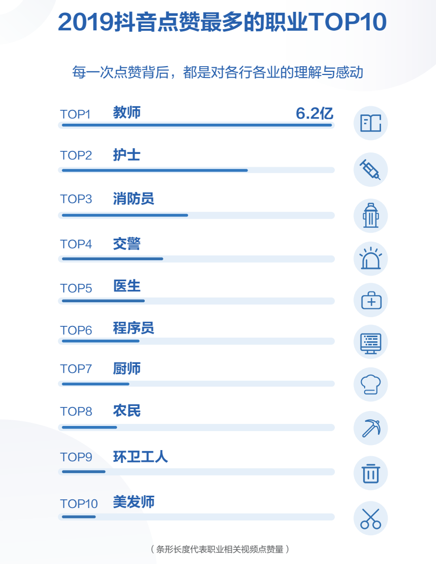 对于短视频来讲,农牧业经营者,或者说农民这个身份也成为最受欢迎的身份,以往给人感觉穷、落后、土的农民,没想到在短视频时代迎来化蝶飞舞的历史性机遇。2019年,在抖音上获得点赞最多的职业中,农民排在前十位。所以,农牧民的好时代正是现在。如图5-19所示。