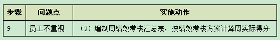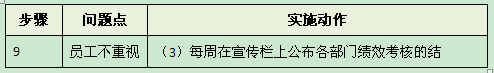 :每周把绩效考核结果张贴到宣传栏上去,让所有员工每周都看得到绩效考核的结果,目标达成的情况。