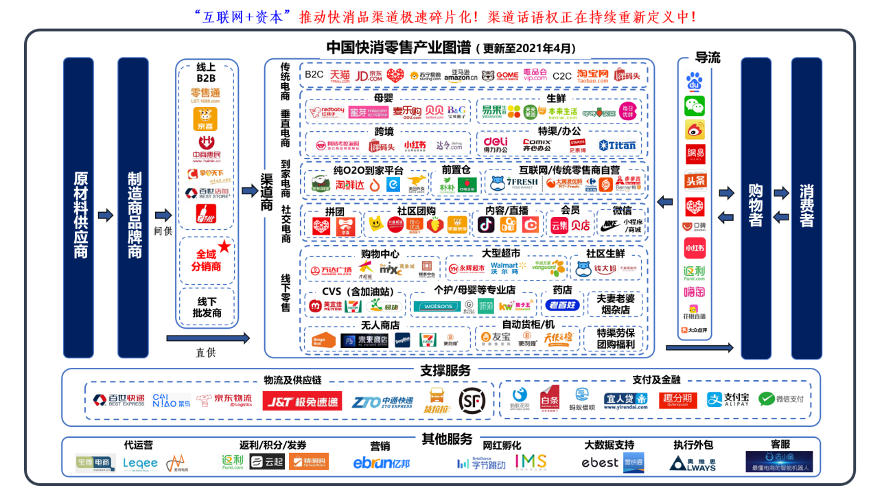 快速消费品作为消费者日常刚需商品,由于其低货值、即时消费等特性,过去传统的流通渠道一直是其主要的销售战场。