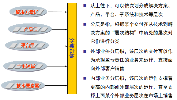 三是通过外部业务分层可以充分寻求各个业务层次的商业和市场机会,谋求公司利润最大化;四是业务分层将市场和竞争机制引入公司内部,每个业务层次都是直接面向市场。