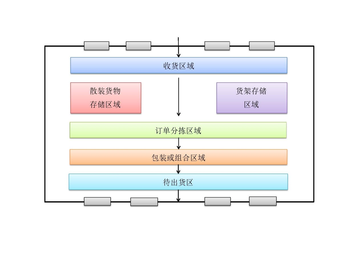 (9)仓库的内部设计布局,应便于产品持续朝一个方向穿过仓库(少转弯,不掉头),类似于厂区的物料流向。