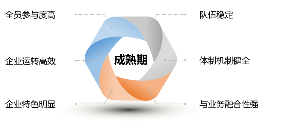 成熟期的企业组织发展基本已经形成自己的特色,如有成熟的组织体系、高效的人才发展平台系统,或组建了自己的企业大学,或像华为一样有了所有企业争相学习的干部管理部门等。总之,企业组织发展进入成熟期必定有自身的特色,该特色甚至是行业的标杆。