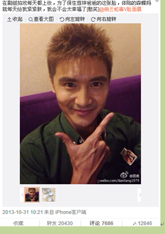 (2) 传播的内容不同。微博有点像私人空间,与粉丝之间更有亲密感,电视上看偶像与微博上看偶像,粉丝的心态是有差别的。微博有点像去偶像家里做客的感觉,特别是微博营销刚开始的时候。我们刚刚开始用明星微博做广告的时候,下面就会有粉丝骂,“你这是在做广告吗?还是私人分享啊,缺这点钱吗?……”骂归骂,但该买还是买。