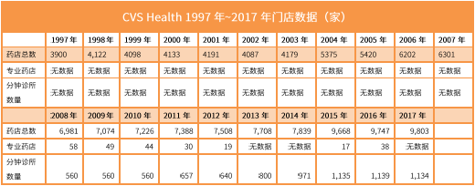 ①从1996年开始,CVS Health旗下连锁药店门店数量由1400家增长至9900家,新增8500家,平均每年新增400家左右;