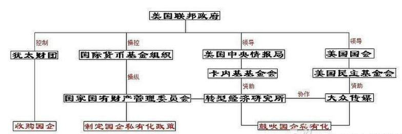 他们成立和控制了一系列“中立”、“权威”的组织——卡内基基金会、民主基金会、国际货币基金组织、高盛公司。卡内基基金会资助苏联的转型经济研究所,扶持苏联学者成为“国际认可的经济学家”,民主基金会渗透大众传媒,宣传西方的生活方式,并暗示这种优越的生活方式和资本主义制度是直线关联的,国际货币基金组织以超级专家的身份帮助苏联制定提高效率的方案,其实是国企私有化,然后由高盛等投行打压股价,并低价收购国企。最终完成了他们的战略意图,在苏联拥有全球顶尖武器的情况下,瓦解了一个强大的国家。