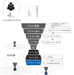 在葫芦的上半部分,可能根据地理位置和兴趣等搜索寻找目标客户。找目标客户的这种行为,被微信挖掘为社交广告的营销广告,如我们经常看到的朋友圈广告;如北京人看到北京本地的广告投放,就是基于地理位置找到你,然后向你投放广告,这就是精准的寻找方式。