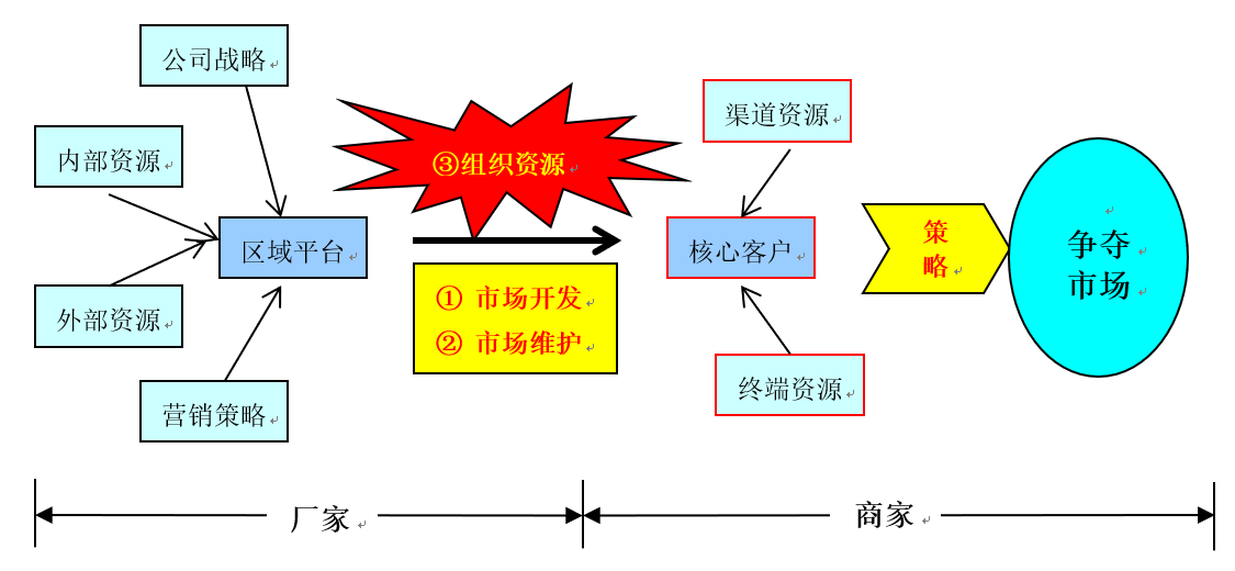 (3)如何组织资源?各驻外区域营销机构应充分利用和组织相关资源,指导、支持、牵引经销商,达到开发市场、精耕细作、应对竞争的需要。