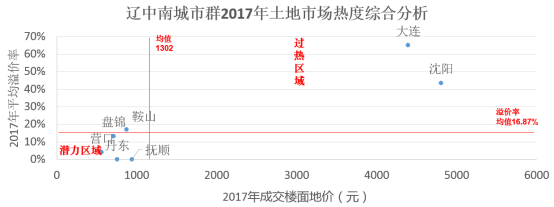 辽中南城市群城市市场热度综合排名TOP3的城市为:沈阳、大连、鞍山。
